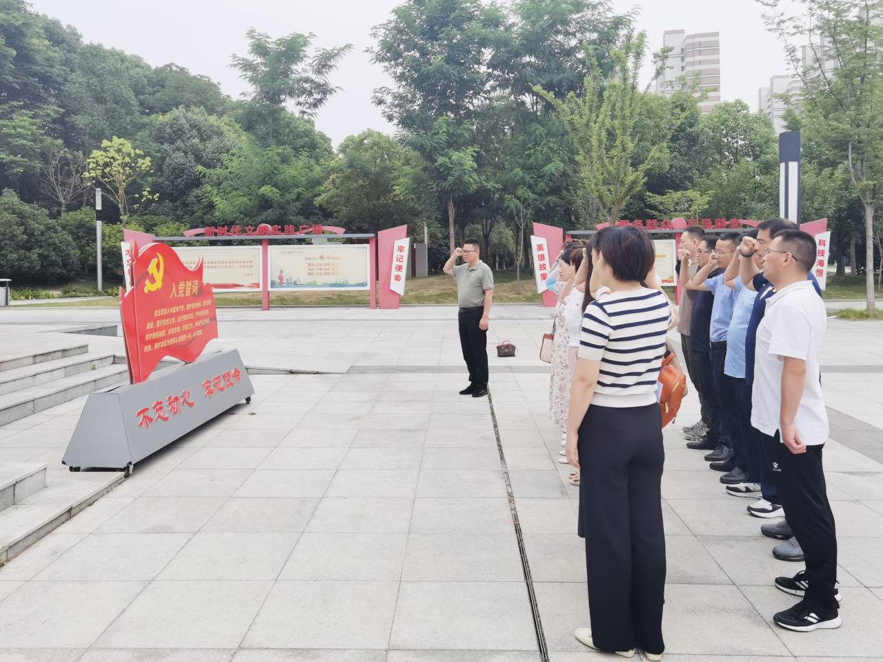 随后,全体党员在盛习友纪念馆广场面向党旗宣誓、重温入党誓词,掷地有声的誓词表明了党员们的坚定信念和决心。